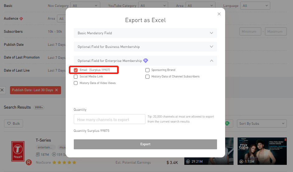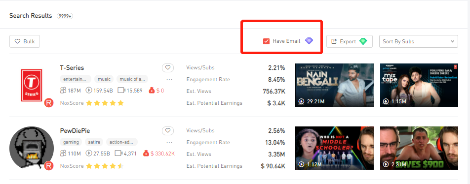 Therefore, NoxInfluencer has another search filter, which is Email filter, to help users only find those channels with Email addresses.