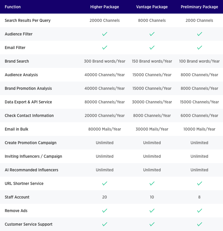 We know currently there is a trend that brands prefer micro-influencers whose sub number ranges from 2,000 to 10,000. Because this group of influencers has a stronger conversion potential. If you have a special demand in influencers’ subscriber number, please give it try.