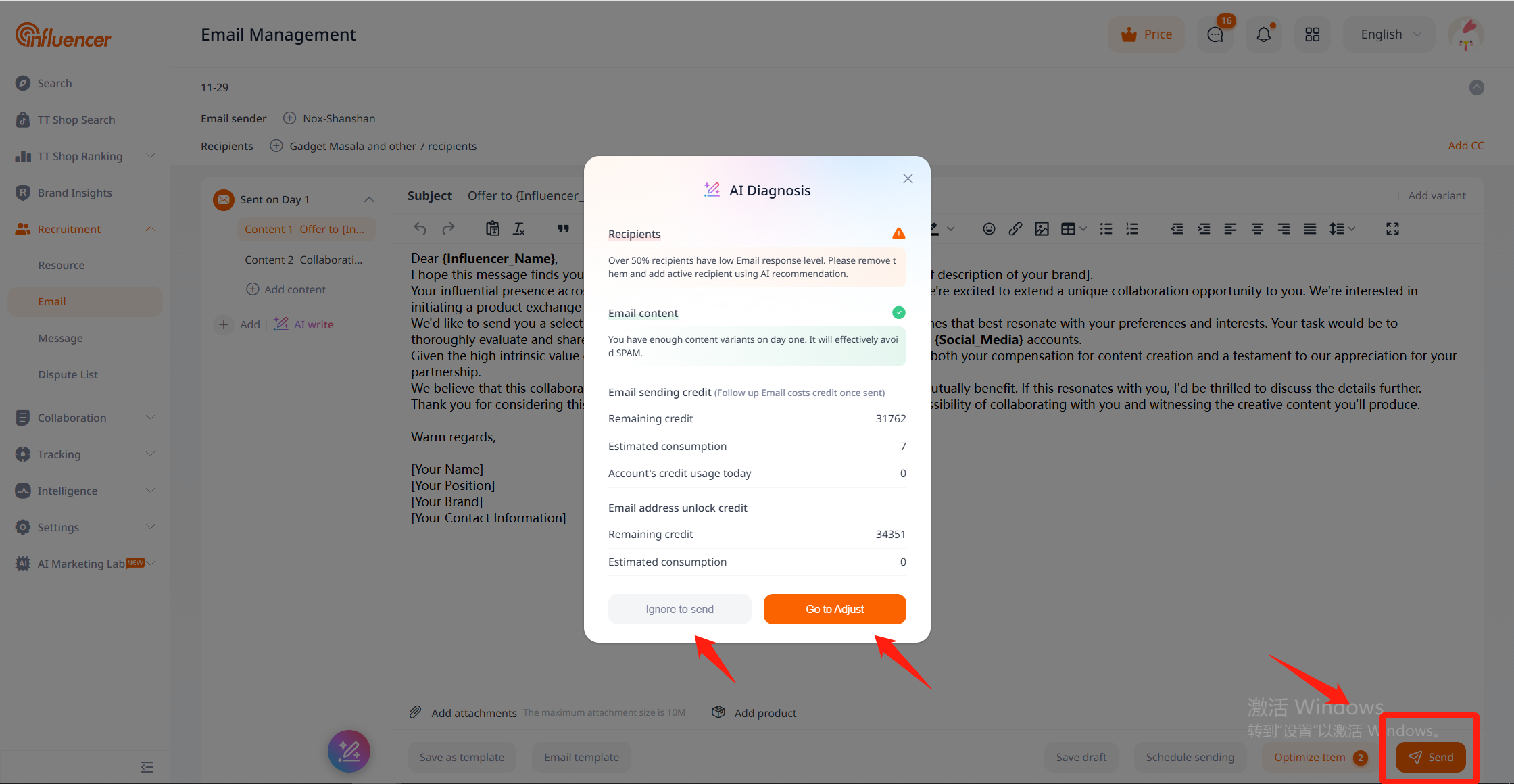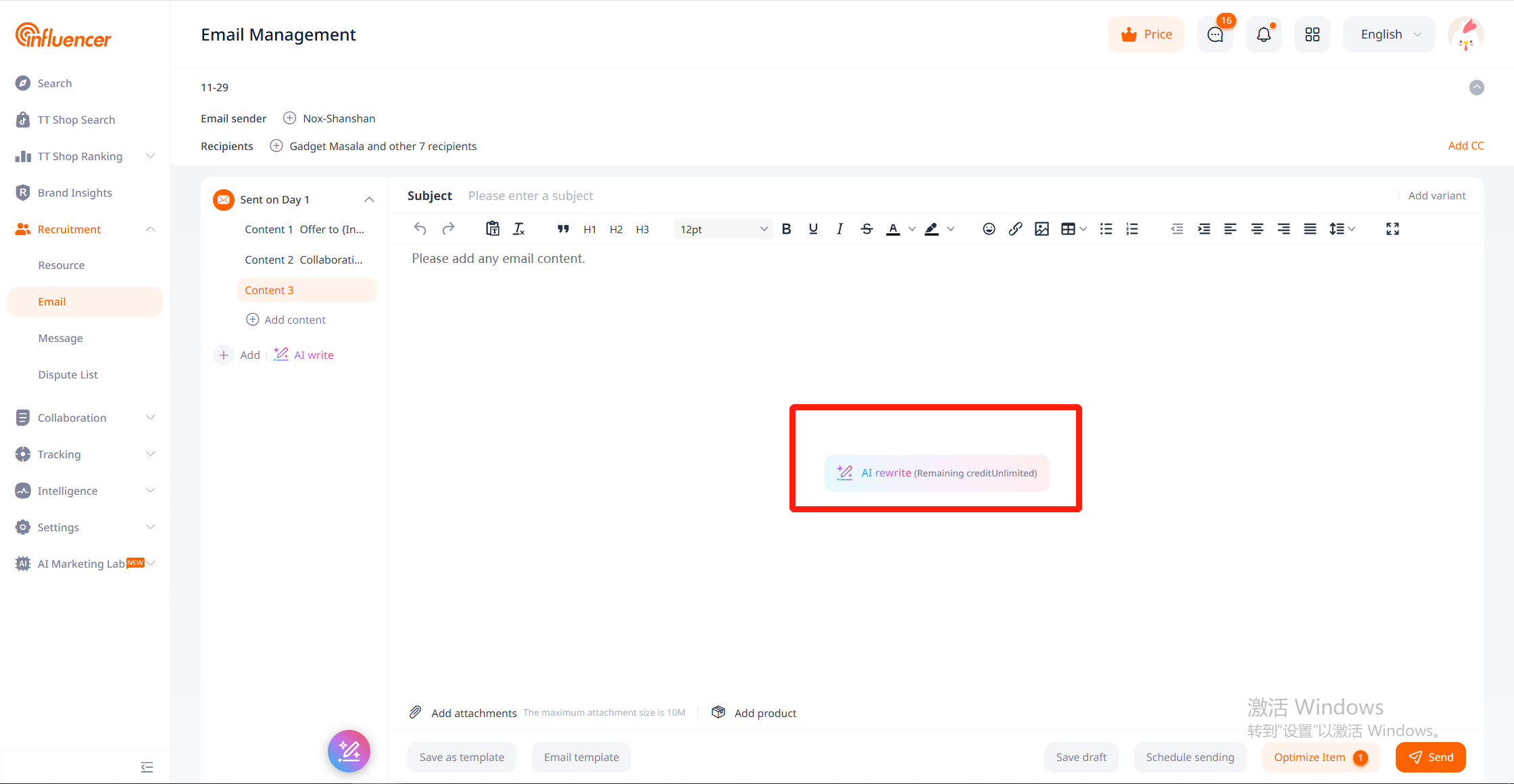 Note: If there are influencers without an email in the selected recipients, these influencers cannot be invited, and their inclusion will not consume the “Bulk Email Credit” . Viewed emails are previously acquired using the “View Email” quota, and sending emails will not reuse this quota.
