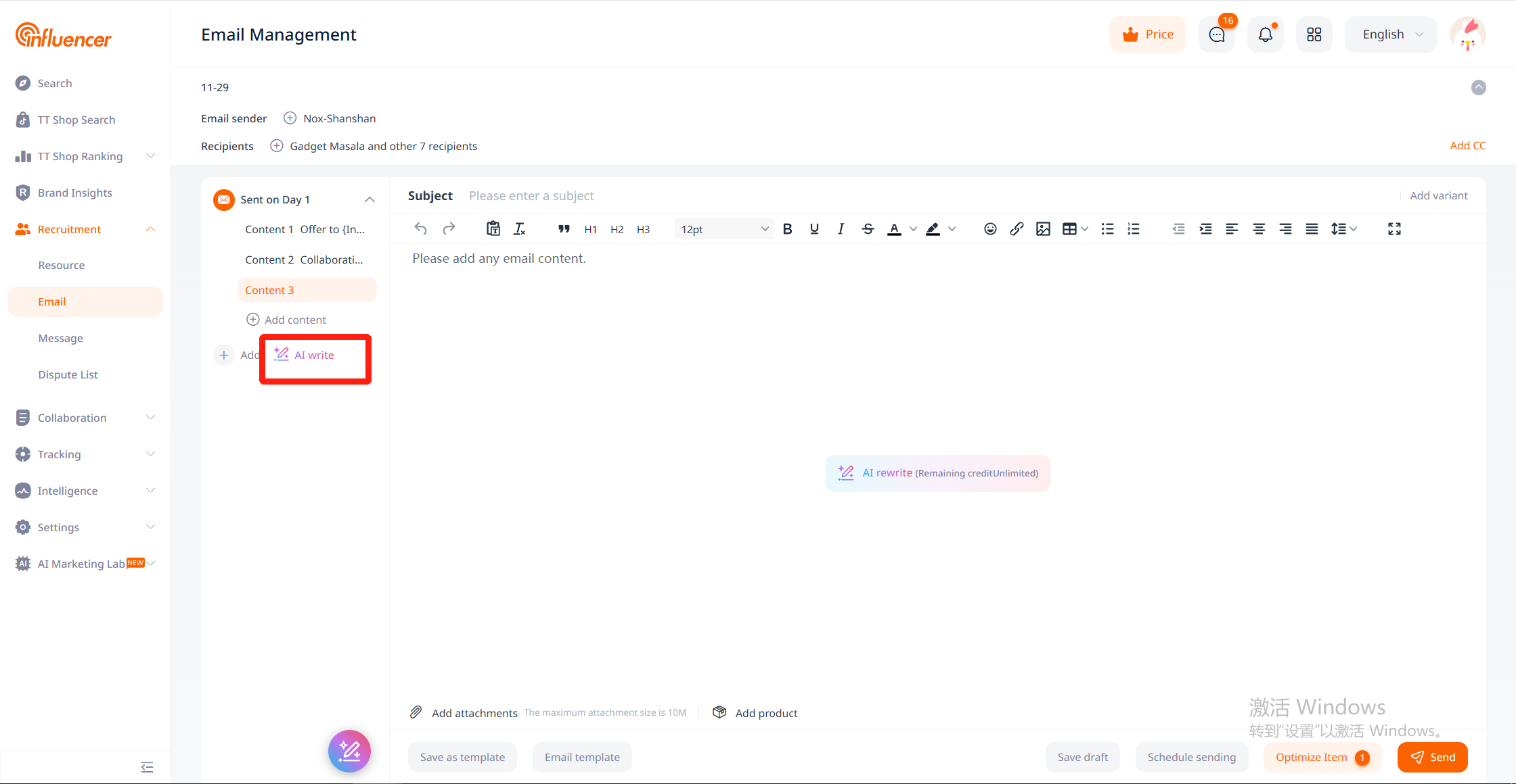 2. If there is no content for the first round, clicking “AI Write” will trigger an AI pop-up, requiring the first round invitation email to be generated first.